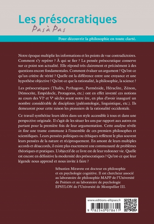 Notre époque multiplie les informations et les points de vue contradictoires. Comment s’y repérer ? À qui se fier ? La pensée présocratique conserve sur ce point son actualité. Elle répond très clairement et précisément à des questions encore fondamentales. Comment évaluer un argument ? Qu’est-ce qu’un critère de vérité ? Quelle est la différence entre une croyance et une hypothèse objective ? Qu’est-ce que la rationalité, la philosophie, la science ?